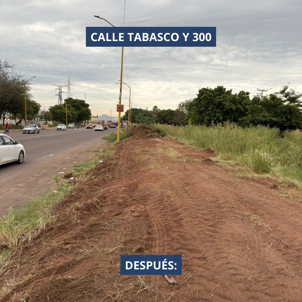 Las calles libres de maleza y despejadas no solo mejoran la imagen urbana, sino que también favorecen la seguridad y la movilidad de todos. Durante este mes trabajamos con maquinaria en las calles Juan Bours, Tabasco y 300, realizando labores de limpieza y mantenimiento para conservar en buen estado estos espacios. En Jalo por Obregón creemos que el cuidado de la ciudad es una tarea compartida. Invitamos a la ciudadanía a sumarse cuidando su entorno, evitando tirar basura y manteniendo limpias nuestras calles. Juntos podemos hacer de Obregón una ciudad más ordenada y agradable para vivir.